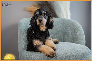 Nador is a purebred poodle. Nador is an affectionate and sweet-natured puppy who thrives on the love and attention of those around him. He has an irresistible charm that makes it impossible not to shower him with affection. Nador absolutely adores all the cuddles and will happily return them with his own puppy kisses. He takes a minute to warm up to you, but once he is comfortable, he loves being right in your lap. He is available with breeding rights to approved homes for an additional cost.