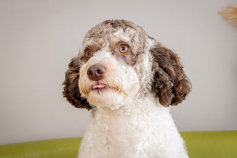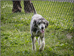 Mustang (Sally's sister) is a Moyen Poodle born on 9-25-2020. She weighs around 45 pounds as an adult and has the kindest soul. She doesn't bother anyone else and likes to do her own thing. All of the employees absolutely love this girl. She has never had puppies. Not that she can't have puppies. She cycles regularly, but we have too many females and continue to skip her seasons. She has been embark health tested and would make a great addition to another program. She is available with breeding rights at an additional cost. She is 100% clear including IVDD and all genetic markers. K/B K/y, a/t a, Bb, spsp. We can share more DNA results if interest in breeding rights.