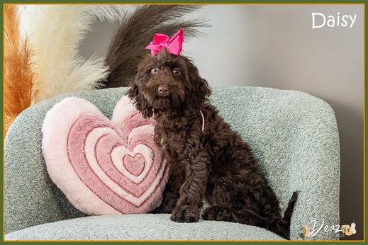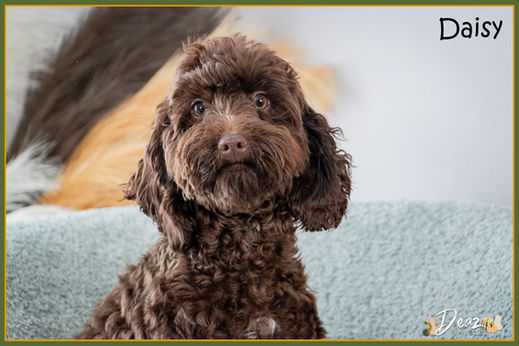 Daisy is endlessly affectionate, and is always looking to leap into your lap for love. Daisy is on the smaller end for her size range and will stay very close to the 18 pound mark as an adult. Great for travel.