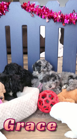 Grace is a dazzling little firecracker who lives life in the spotlight—exactly where she belongs! With her striking merle markings and vibrant personality, she’s absolutely mesmerizing from the moment you see her.