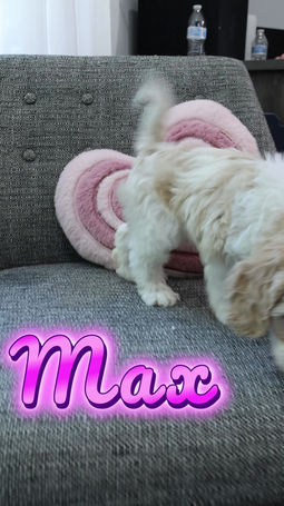 Maxine is a spunky and playful pup who loves being held close while showing off her silly side. She uses her paws with charm and excitement, especially when shaking her toys with joy.